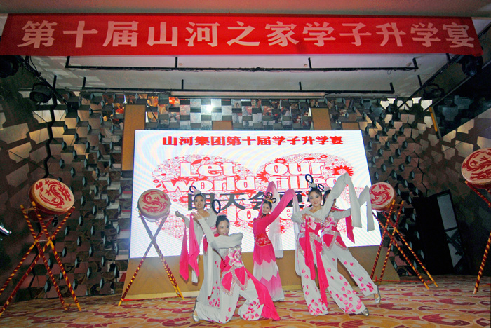 在活動中,山河集團為學子們安排了一場精彩的文藝表演。在五彩的燈光映襯下,伴隨著美妙的旋律,《讓我們舞起來》、《沙場點兵》、《好日子》等節目表達了山河集團對山河學子們即將踏入大學生活的祝福;整場文藝演出高潮迭起,精彩紛呈。