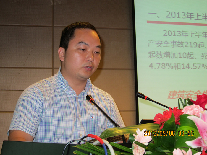 接著,湖北公司安全管理部經理李志勇進行工作匯報,他分別從2013年上半年全國安全事故統計分析、模板支撐體系的管理、大型起重設備的管理、其他分部分項工程安全管理、文明施工管理及其他需要項目經理關注事項等方面展開。通過生動的案例,找亮點,尋不足,形象生動,引人思考。“無危則安,無損則全”,希望山河集團的所有項目都能夠無危無損,安安全全!