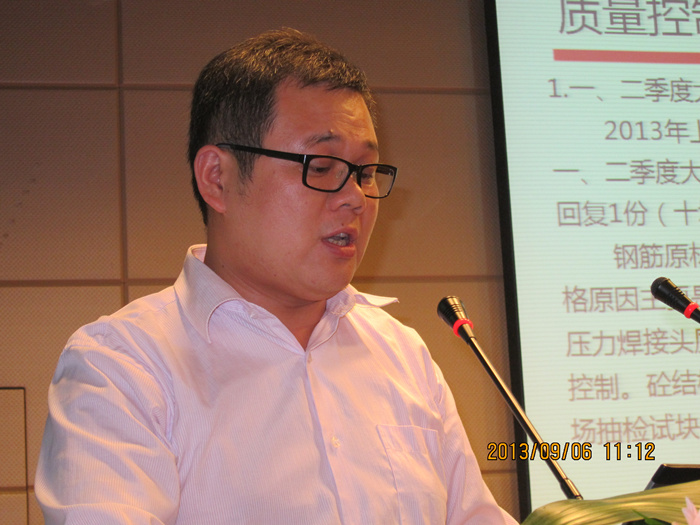 視頻過后,湖北公司副總工羅定軍進行工程管理部工作匯報,分別從質量控制、進度管理、創優計劃、相關質量問題防治等方面進行闡述。他對湖北公司2013年一、二季度質量安全大檢查中的工程質量情況進行了通報,并對進度管理提出了建議,特別對省結構優質工程、楚天杯申報條件進行了介紹。