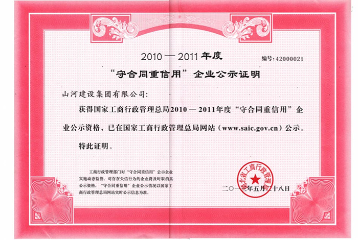 山河集團榮獲國家工商總局2010―2011年度“守合同重信用”企業(yè)稱號