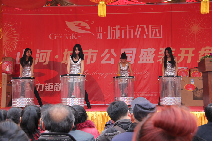 上午9時許,山河•城市公園營銷中心門前人頭攢動,許多客戶在現場已經等候多時。 9時18分,在精彩的開場節目表演后,山河集團房地產事業部副總經理兼益鵬置業總經理姜薛發表了慷慨激昂的致辭,宣布開盤儀式正式啟動。外場有勁歌熱舞、小丑表演、水鼓表演等熱鬧非凡的演藝節目,加上包括51寸超大液晶電視、智能洗衣機等豐厚獎品的抽獎活動吸引了不少團風百姓的駐足。內場更是驚喜不斷,城市公園貼心準備了糕點和茶水供客戶享用,而三房最低26萬起和最低95折的給力優惠讓在場的置業者們激動不已,接待選房的城市公園置業顧問們應接不暇。營銷中心里不斷傳出工作人員恭喜來賓選房成功的聲音。沒多久,此次推出的1、2、3、4號樓主力戶型熱銷近260套,創造了團風房地產市場上的奇跡。