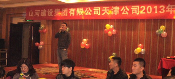 金蟒穿云去,紫騮踏雪來。在這辭舊迎新的時節,山河建設集團(天津)有限公司2013年年會于2014年1月11日在天津塘沽區北海明珠酒店圓滿舉行。大會凝聚了公司管理層、項目經理的智慧和汗水,是天津公司對既往豐富經驗的傳承和對未來戰略規劃的構想,也是員工共聚一堂、喜迎新春的歡聚盛會。