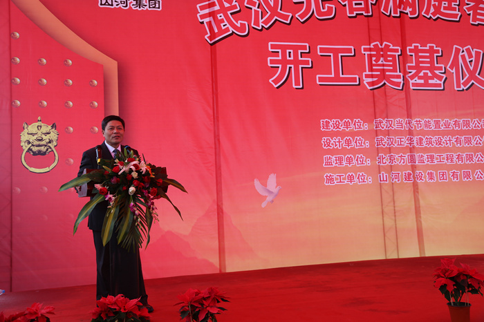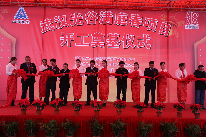 2月24日上午,春雨瀟瀟,武漢光谷滿庭春項目奠基儀式隆重舉行。當代節能置業(中國)有限公司總裁張鵬、副總裁倪群亮,當代節能置業湖北地區公司總經理張智濤,山河集團董事長程理財、副總經理兼湖北公司總經理林中茂等一行領導出席了奠基儀式。