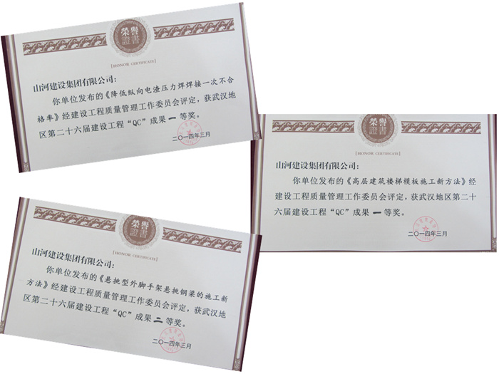 2013年,集團(tuán)及區(qū)域公司技術(shù)部門和項(xiàng)目部的相關(guān)技術(shù)管理人員,針對施工過程中存在的質(zhì)量問題,圍繞健全制度、提高質(zhì)量、創(chuàng)造效益為核心,積極開展QC活動(dòng),上述獲獎(jiǎng)的QC成果就是其中的代表。本次QC成果發(fā)布,漢陽人信匯項(xiàng)目的《高層建筑樓梯模板施工新方法》、招商雍華府項(xiàng)目的《降低縱向電渣壓力焊焊接一次不合格率》獲得市一等獎(jiǎng),奧山世紀(jì)城項(xiàng)目的《懸挑型外腳手架懸挑鋼梁的施工新方法》獲得市二等獎(jiǎng)。取得這樣的成績,得益于集團(tuán)公司及區(qū)域公司領(lǐng)導(dǎo)的支持和項(xiàng)目部各位同仁的共同努力。