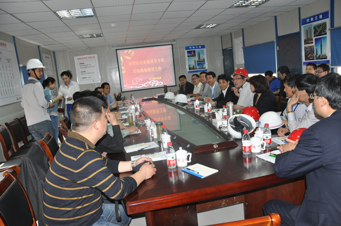 聽取了項目部關于創建質量標準化過程的專項匯報后,調研組隨后觀看了現場樣品庫、實物樣板展示區、鋼筋加工區,并到項目16#樓進行了實體檢查調研。穎東區質量監督分局許局長針對現場質量控制和保護措施進行了講解,調研組對項目部采用的一些新的控制質量的工藝和成品保護措施,表示認可和贊同,并對一些防治質量通病的控制措施進行了指導。調研組專家一行對現場實體質量較為滿意,本次檢查調研開展順利。