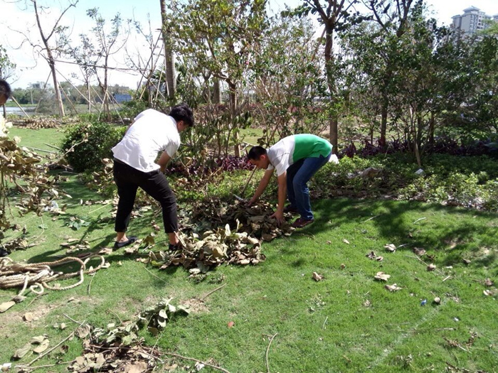 狂風吹不走恒正人的堅強、暴雨也不能刷去“琥珀”的美麗!7月19日至24日,全體恒正員工頂驕陽,戰高溫迅速開展自救,一顆顆傾覆的苗木被扶正重植、一片片狼藉的區域被清掃、一處處房間、陽臺積水被清理,“琥珀悠瀾”在我們的自救中正一步步找回昔日美麗!