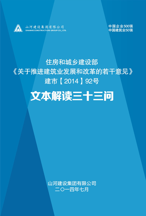山河集團出臺住建部92號文解讀文本――《關于推進建筑業發展和改革的若干意見的三十三問》