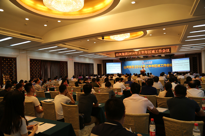荷風送香氣,竹露滴清響。8月2日,山河集團2014年上半年區域工作會議在美麗的東湖之濱隆重召開。總部全體員工、區域公司高管、分(子)公司高管、委派財務人員近200人參加了會議。大會由集團公司副總經理舒建兵主持。作為階段性的專題會議,本次區域工作大會主要任務是全面總結各區域公司上半年工作完成情況,深刻查找發展中出現的問題,認真分析現階段的困難和差距,并周密部署下半年的各項工作。