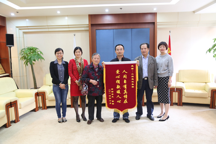 10月17日一早,武漢城市職業學院學前教育專業大二學生陳鈴71歲的奶奶就和爸爸、舅爺一起坐第一班城際列車,從黃州趕到武漢,為山河集團送來一面寫有“人間自有真情在 愛心捐款暖人心”的錦旗。