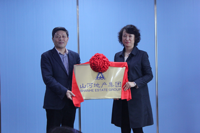 隨后,伴隨著熱烈的掌聲,山河集團(tuán)董事長(zhǎng)程理財(cái)與山河地產(chǎn)集團(tuán)董事長(zhǎng)王君一為山河地產(chǎn)集團(tuán)成立儀式揭牌。