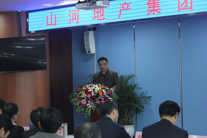 隨后,地產集團總經理黃斌在發言中表示,加入山河,感到非常光榮和自豪,也深刻意識到自己的責任和使命,未來他將忠誠職業、勤懇敬業,盡快融入山河文化,發揮專業能力和多年經驗,推進企業發展,將山河地產打造成新的利潤增長點。