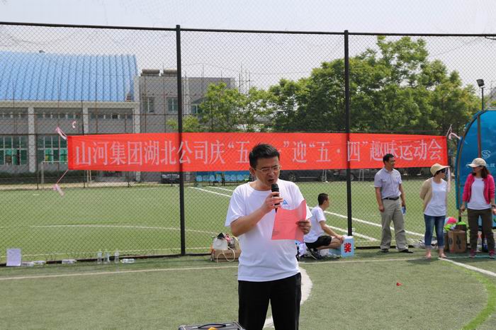 4月30日下午,山河集團湖北公司在東湖陽光足球場舉辦了以慶“五•一”迎“五•四”為主題的趣味運動會。來自湖北公司、集團公司及部分項目部代表共計100余人按照隨機抽簽的方式分為紅、綠、藍、黃四隊。運動會開幕式上集團公司常務副總經理兼湖北公司總經理林中茂作了簡短的致辭講話。
