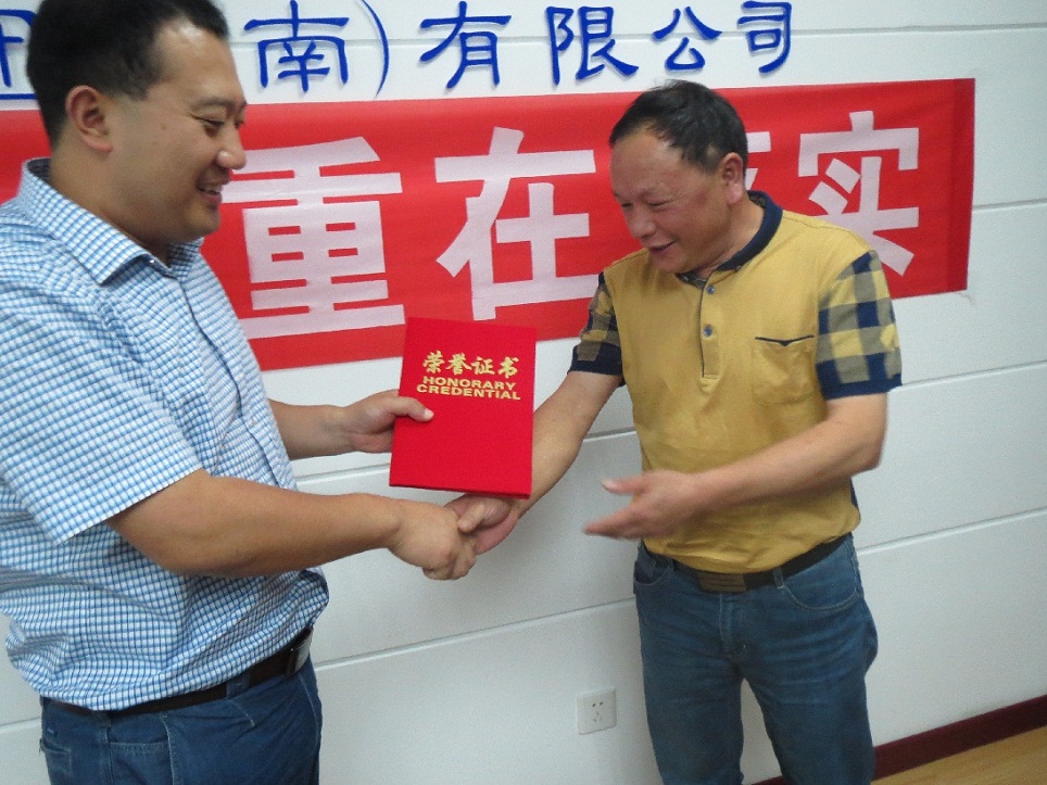 隨后,河南公司還組織了生動的安全知識競賽,安全知識競賽以知識答卷的形式進行。目的是提醒大家作為主要安全管理人員,一定要有一定的知識儲備。最終萬科U63-02地塊二標段北區生產經理張桂祥獲得此次競賽第一,工程副總經理劉軍為他們頒發了榮譽證書。