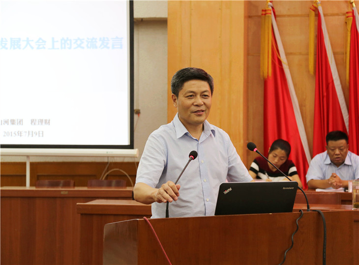 山河集團董事長程理財在會上作交流發言。在介紹了山河集團近年來的發展情況后,他結合自身在建筑行業30余年的經驗,深入分析了新常態下建筑業面臨的發展機遇與挑戰。程董事長指出,機會是留給有準備的人,高度市場化的競爭方式對弱者意味著危機,對強者意味著機遇。他結合當前的市場環境、管理經驗、發展趨勢分析了建筑業的“危與機”,并列出建筑企業目前面臨的九個“生死”關鍵。在對建筑業發展的思考中,他強調兩大要素,一是“守正”,二是“規模加創新”。他從品牌、團隊、融資、大市場、大客戶五個方面對如何做大規模做了深入剖析;結合豐富案例分享了“細節、戰略、產業、模式、平臺”如何決定企業成敗,強調發展要創新、要找準定位,企業應結合自身情況走差異化的道路。最后,他表示,希望在各級黨委、政府的指導下,在行業主管部門的推動下,在座的團風企業家能夠整合優勢、合作共贏,合力推進團風建筑業實現轉型升級發展。