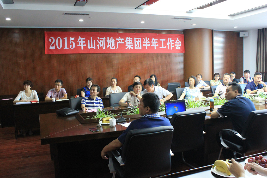 8月12日,山河地產集團2015年半年工作會議在山河企業大廈召開,地產集團全體人員以及山河旗下所有地產項目的負責人參加了會議。會議由地產集團董事長王君一主持。