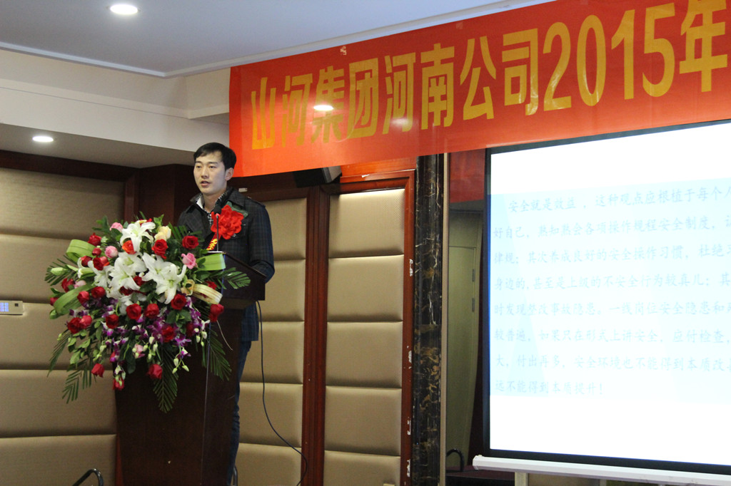 2016年1月16日上午,河南公司2015工作會(huì)議暨表彰大會(huì)在鄭州格林東方酒店隆重舉行。河南公司全體員工、項(xiàng)目經(jīng)理、項(xiàng)目部主要管理人員、表彰人員等共計(jì)70余人參加了此次會(huì)議。山河集團(tuán)常務(wù)副總兼湖北公司總經(jīng)理林中茂、河南公司總經(jīng)理馬文敏等領(lǐng)導(dǎo)參加了本次會(huì)議。大會(huì)由河南公司副總經(jīng)理余亮主持。