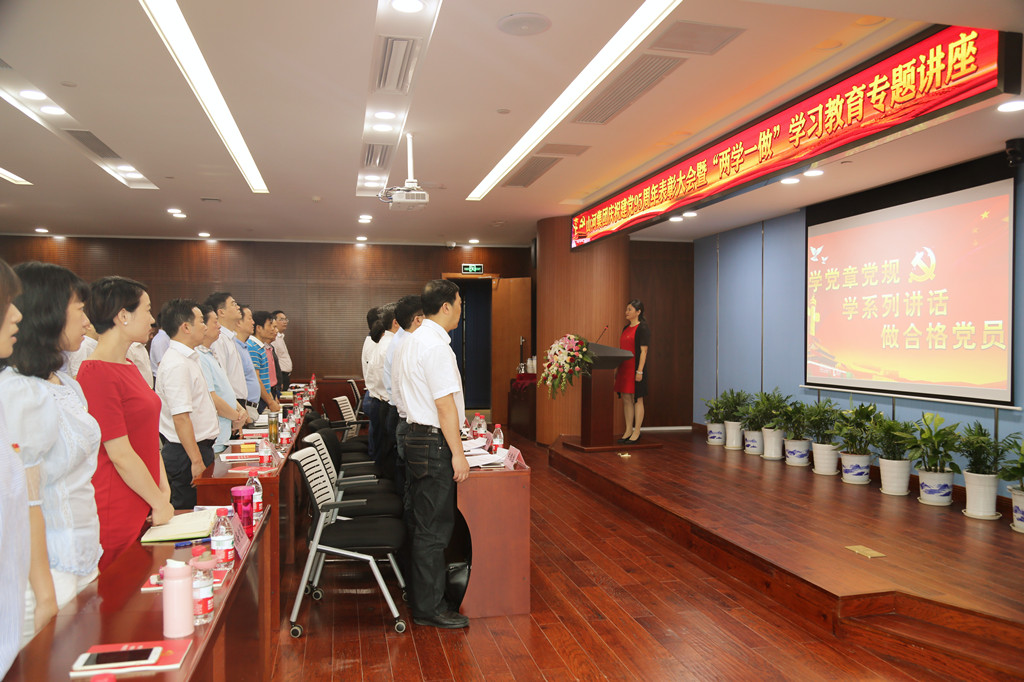 最后,集團公司董事長、黨委委員程理財帶領與會人員回顧了建黨95年的發展歷程,與大家分享了學習黨課的體會。他表示,作為一名老黨員,自己將帶頭踐行“兩學一做” 學習教育,腳踏實地做合格黨員。他在講話中要求,全體黨員要“平常時候看得出來、關鍵時刻站得出來、危急關頭豁得出來”,為自己、為企業、為社會努力工作。