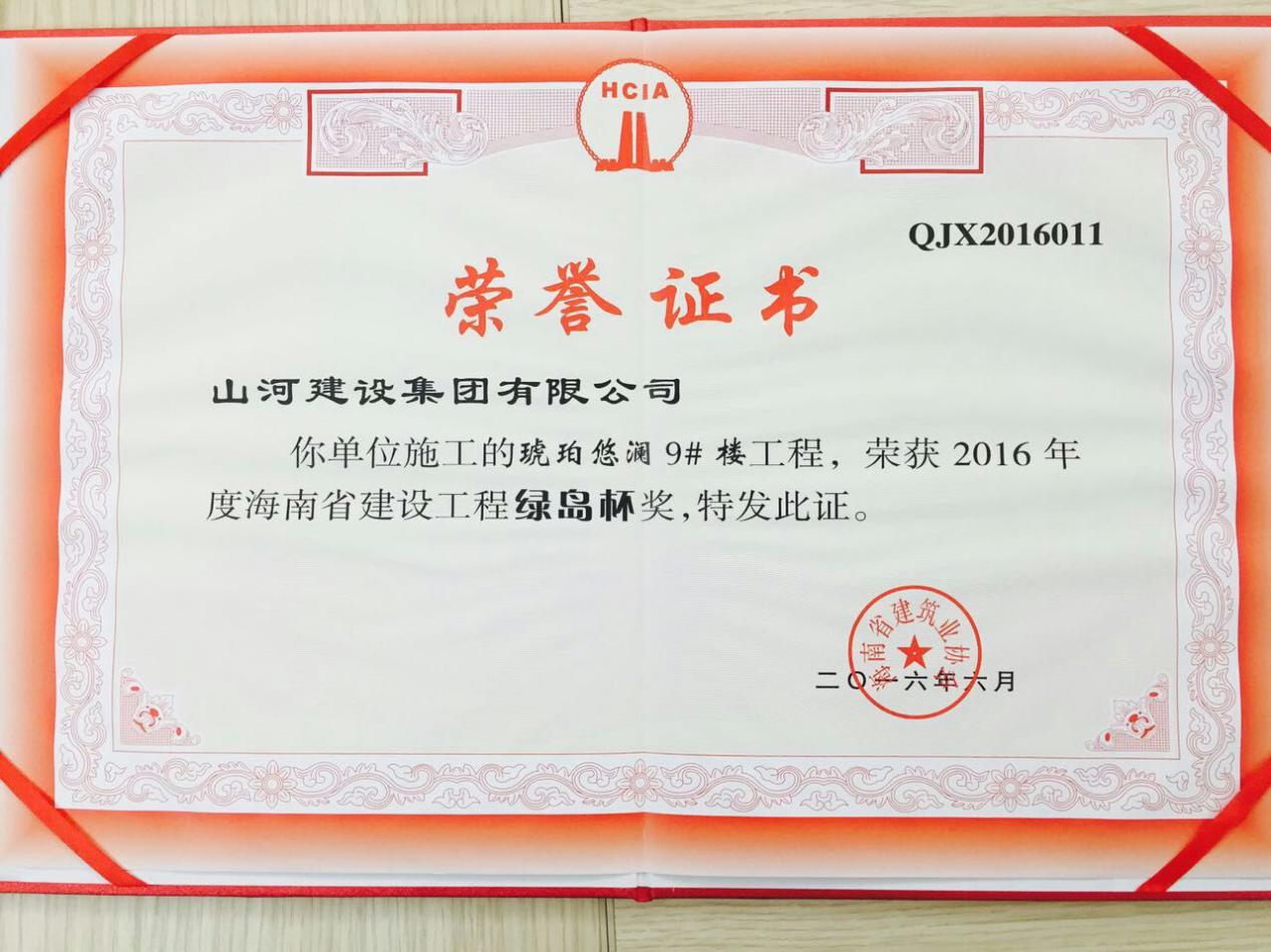 7月14日,海南省建筑業協會組織開展的2016年度海南省建設工程“綠島杯”獎的評選工作已經結束,經過嚴格的評審和公示,山河集團海南公司承建的琥珀悠瀾項目9#樓榮獲海南省建設工程“綠島杯”。