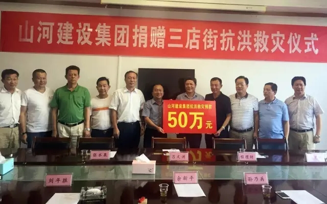 上午10時,董事長一行抵達新洲區三店街道辦事處,新洲區人民政府副區長呂文洲聞訊也趕到現場。山河集團向該辦事處捐資50萬元,支持三店鎮人民的災后重建。