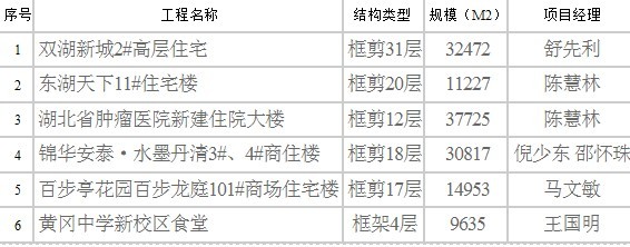 山河集團2006年度湖北省建筑結構優質工程一覽表