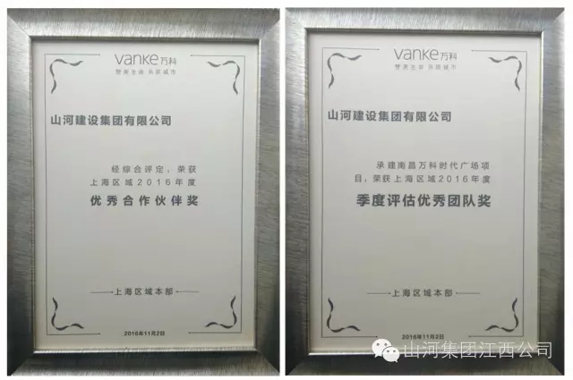 [江西公司]山河集團榮獲萬科上海區域年度獎項,更獲“三優”權利!