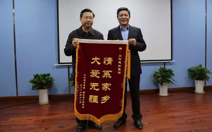 會上,團風縣委給今年抗洪救災中作出巨大貢獻的武漢團風商會和山河集團贈送錦旗,表達謝意。武漢團風商會黨支部書記朱會國對商會今年在抗洪救災募捐活動中參與捐助的商會成員進行了授獎,13名會員被評為愛心捐助楷模;13名會員被評為愛心捐助標兵;20名愛心捐助者獲表彰。