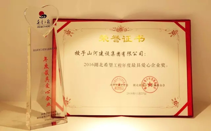 11月25日晚,由共青團湖北省委、省青基會主辦的“湖北希望工程第七屆慈善盛典”在湖北省奧體中心舉行。山河集團受邀參加此次盛典,并獲頒2016湖北希望工程“年度最具愛心企業獎”。