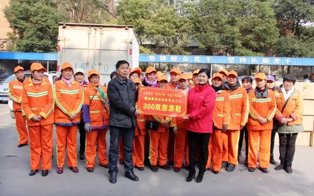 12月29日,山河集團開展暖冬行動再次起航第二站――“足底下的溫暖”,贈送黃州市區的環衛工人300雙旅游鞋,讓在寒冬里工作的環衛工人足底保暖。