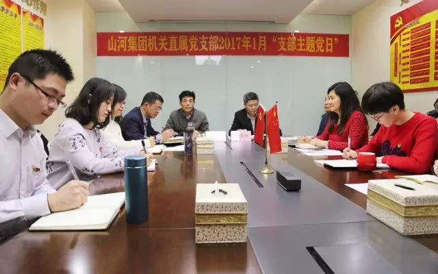 1月4日,山河集團機關(guān)直屬黨支部召開2017年第一個“支部主題黨日”活動,支部黨員共22人在集團黨建活動室參加學(xué)習(xí),活動由支部書記程秋明主持,集團黨委書記、董事長程理財以普通黨員身份出席。