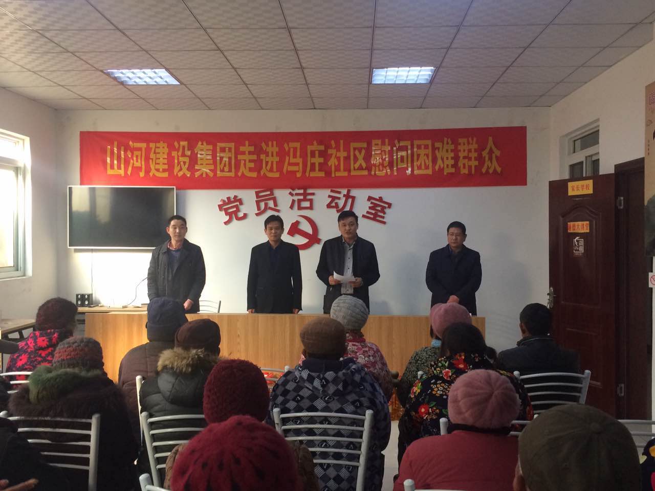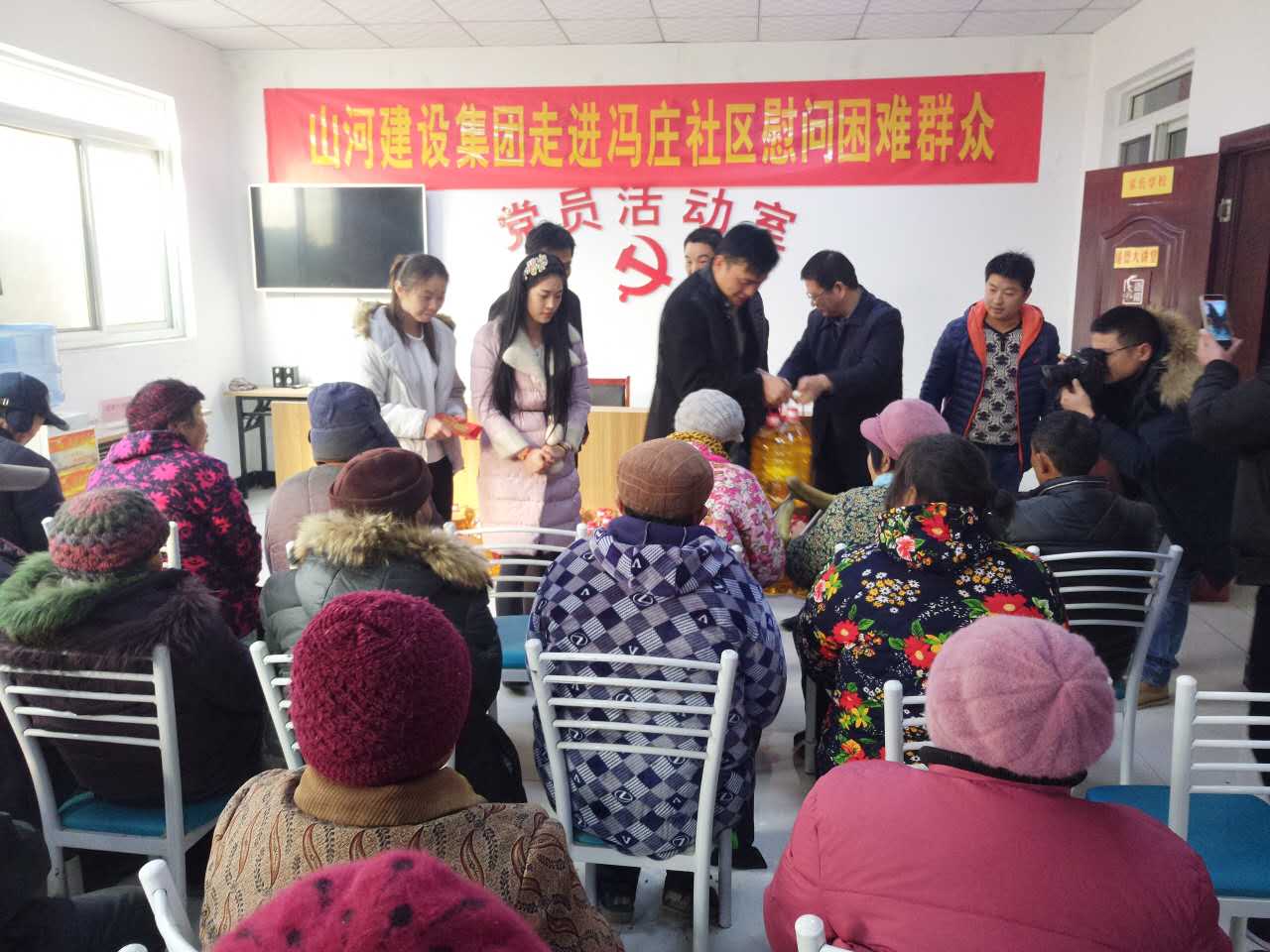 1月17日下午,值此新春來臨之際,為答謝云龍區政府、馮莊社區領導及社區群眾對山河集團徐州公司的幫助,徐州公司總經理陳偉率全體員工走進馮莊社區,慰問社區20個困難家庭。