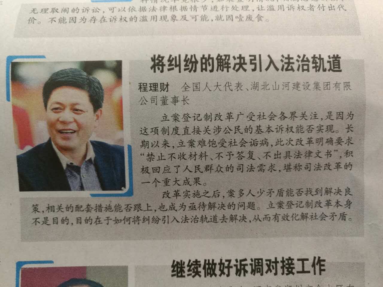 全國人大代表程理財:將糾紛的解決引人法治軌道