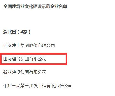 山河集團獲評全國建筑業文化建設示范單位