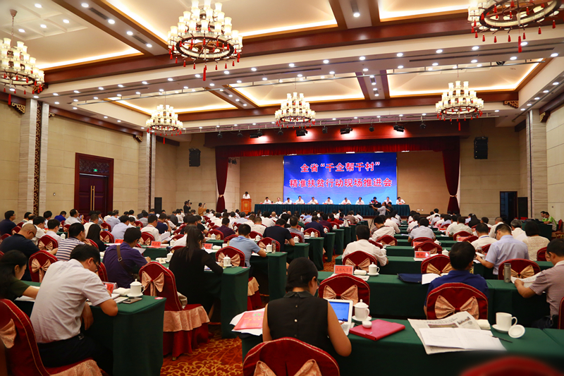 9月14日,湖北省“千企幫千村”精準扶貧行動現場推進會在黃岡市英山縣舉行。湖北省委常委、省委統戰部部長爾肯江•吐拉洪在會上講話。湖北省工商聯主席劉順妮通報了全省“千企幫千村”精準扶貧行動推進情況,現場舉行了村企結對簽約儀式。會議由湖北省委統戰部副部長、省工商聯黨組書記、常務副主席王兆民主持,黃岡市委書記劉雪榮致辭。