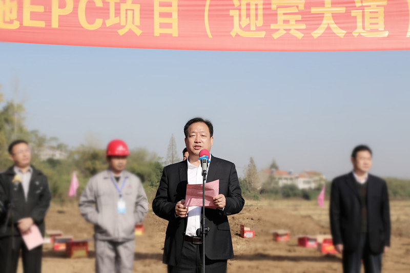 團風縣委副書記、縣政法委書記閆吉講話。他指出,迎賓大道改造工程是團風縣近年來最大的市政工程,也是團風6個EPC項目中最先開工的項目。迎賓大道的建設對城區與高速的對接、打造城市景觀中軸線、建設團風美麗新城有著非常重要的意義。他要求,各級、各部門要明確責任,改進作風,確保工程順利進行。
