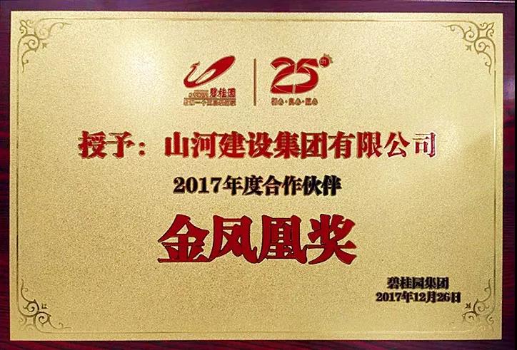 強強聯手 匯聚匠心 | 山河集團獲評碧桂園2017年度優秀合作伙伴“金鳳凰獎”