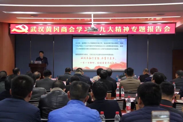 “武漢黃岡商會學習黨的十九大精神專題報告會”在山河集團舉行,集團黨委書記作黨建主題報告