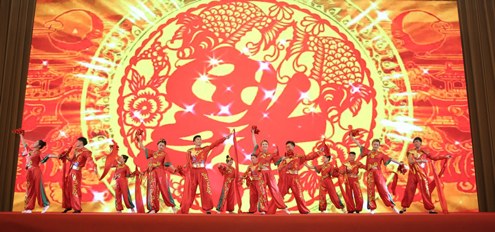 下午4時,開場舞《歡聚一堂》以歡快的畫面,拉開了年會的序幕。全體山河人共同觀看山河集團2017年大事記,回顧山河人在過去一年中的奮斗成果。