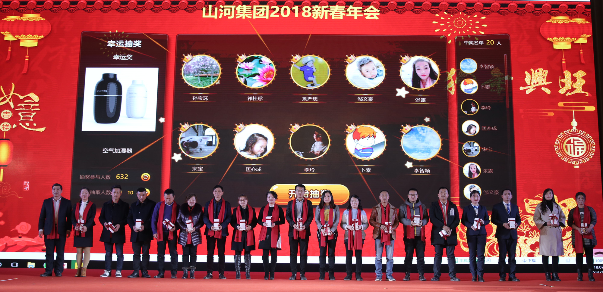 來自山河集團總部和各區域公司自編、自導、自演的節目精彩紛呈,博得全場喝彩,展示了山河人團結、拼搏、奮發、青春的精神風貌,其中穿插的抽獎環節,更是引得全場沸騰,將晚會一步步推向高潮。