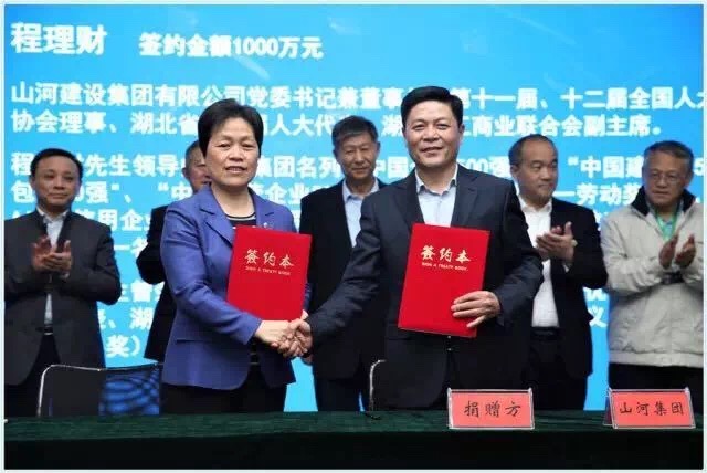 3月31日下午,在武漢大學舉行第三次人才引進基金集中捐贈簽約儀式上,作為武漢大學校友之友企業家、楚商20強杰出代表的山河集團黨委書記、董事長程理財,向武漢大學人才引進基金捐贈1000萬元,用于支持武漢大學“引鳳筑巢”,引進高端人才。