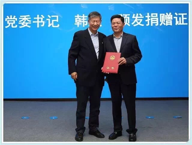 ▲武大黨委書記韓進為董事長程理財頒發捐贈證書