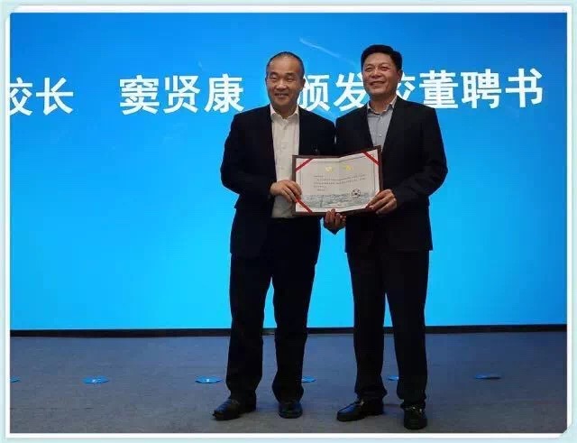 ▲武大校長竇賢康向董事長程理財頒發校董聘書