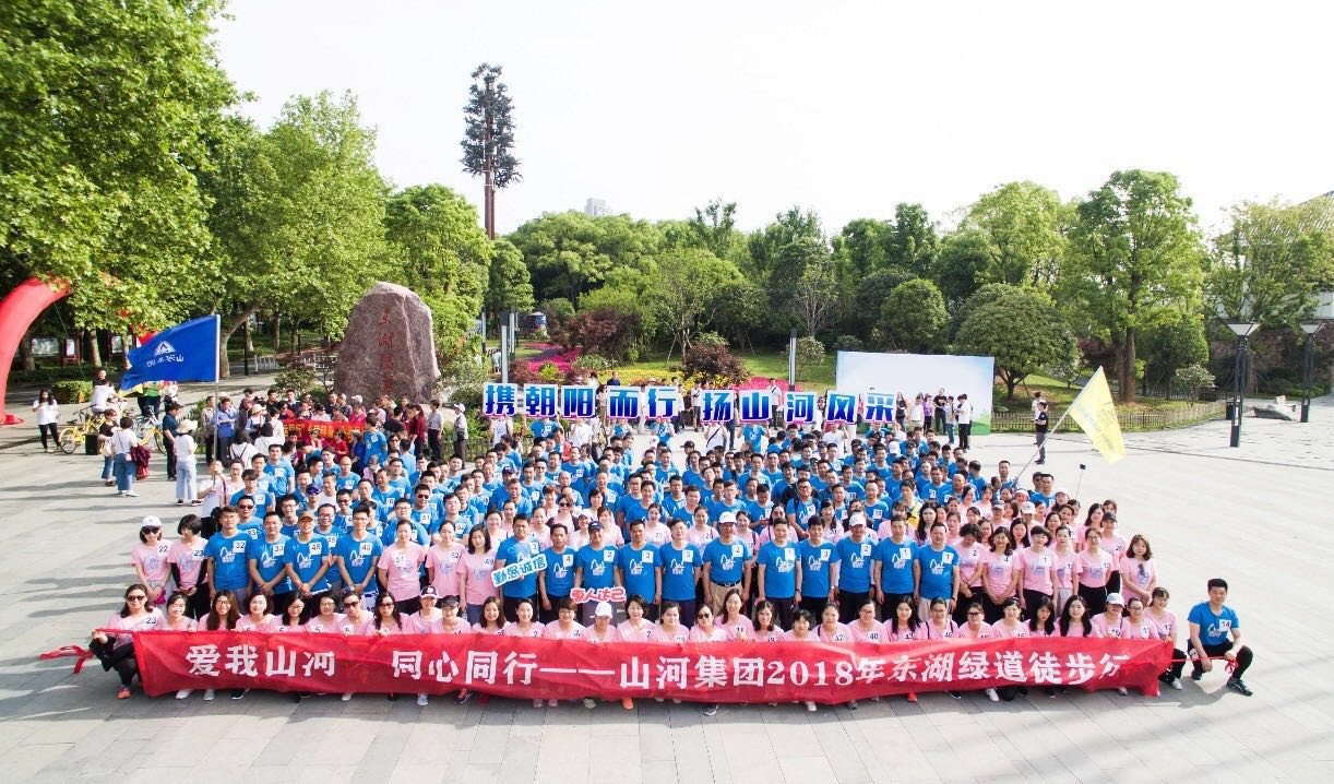 5月4日,青年節這天,山河健兒們整裝待發,熱情昂揚的迎來了“愛我山河 同心同行”2018年東湖綠道徒步行活動。活動由山河集團黨委、工會組織,來自集團總部、建設集團、地產集團、湖北區域公司、在漢子公司等400余名選手在主會場參加了徒步比賽。