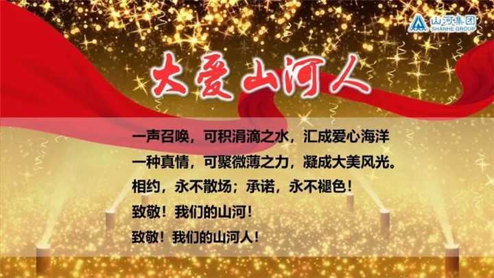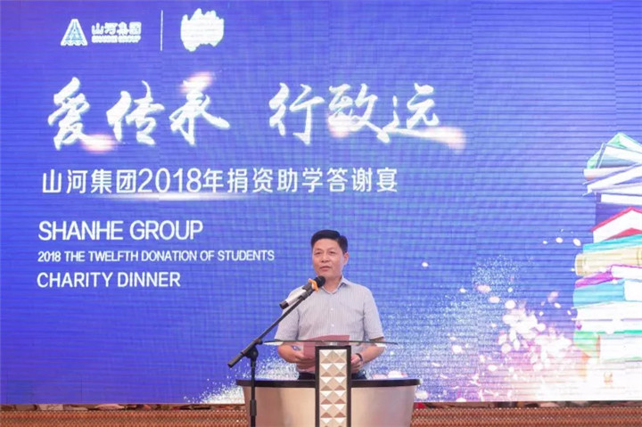 他感謝全體員工的大義與擔當,感謝大家13年來不求回報的無私付出。他說,正是有了大家的一份份愛心,山河的捐資助學善款才如涓涓細流匯成海洋,讓眾多的貧困學生在追夢的路上,點亮人生夢想。教育扶貧是國家戰略,教育事業是千秋大業。只要社會有需要,山河就會堅持將捐資助學做下去。