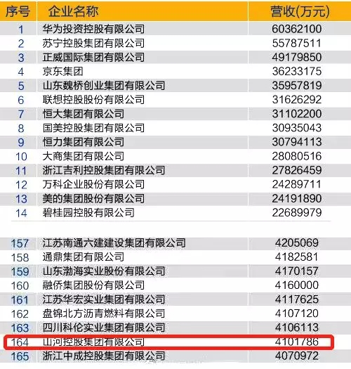 8月29日,全國工商聯(lián)發(fā)布中國民營企業(yè)500強(qiáng)榜單,山河集團(tuán)名列“2018中國民營企業(yè)500強(qiáng)”第164位,較去年172位名次略有上升。同時,在上榜的“民營建筑業(yè)前十企業(yè)”中,山河集團(tuán)位列第9位。