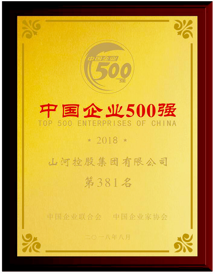 9月2日,中國企業聯合會、中國企業家協會在西安聯合發布2018年“中國企業500強”榜單,山河集團榮列中國企業500強第381位。這是山河集團自2014年首次以位列第413位次上榜以來,連續五年榮膺“中國企業500強”。今年創歷史最高排名,較去年位次前進66位!