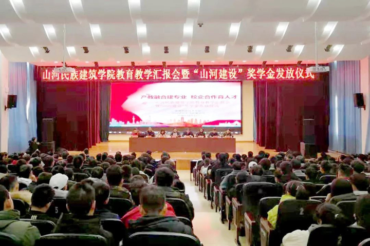 初冬時節,寒意漸濃,12月11日上午,恩施職業技術學院學術報告廳里暖意融融。山河建設集團總裁許金華,集團人力資源總監李穎、人力資源部總經理匡亦成,工程技術管理部BIM中心主任李圣龍一行和學校200余名師生在這里聆聽了山河民族建筑學院教育教學匯報會,共同見證了“山河建設”獎學金發放儀式。會議由山河民族建筑學院副院長雷元凱主持。