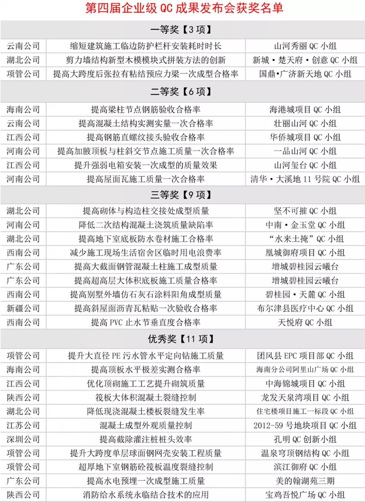 經(jīng)過專家組綜合評審,《縮短建筑施工臨邊防護欄桿安裝耗時時長》等3項成果榮獲一等獎,《提高梁柱節(jié)點鋼筋驗收合格率》等6項成果榮獲二等獎,《提高砌體與構(gòu)造柱交接處成型質(zhì)量》等9項成果榮獲三等獎,《提升大直徑PE污水管水平定向鉆施工質(zhì)量》等11項成果榮獲優(yōu)秀獎。