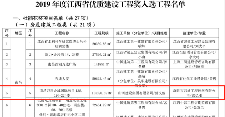 近日,從江西省住房和城鄉建設廳獲悉,山河建設集團江西公司承建的南昌萬科金域國際項目13#、19#-22#樓榮獲2019年度江西省優質建設工程“杜鵑花獎”。