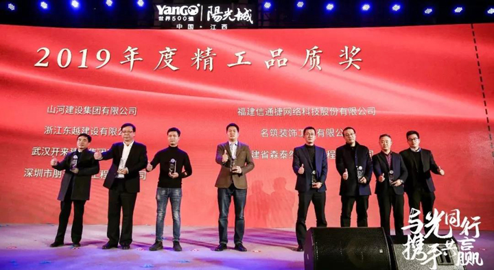 12月18日,陽光城集團江西區域“與光同行 攜手共贏”合作伙伴答謝會舉行,山河建設集團江西公司總經理熊善杰應邀出席答謝會。會上,山河建設集團榮獲江西陽光城2019年度“精工品質獎”,并被評為“優秀合作伙伴”。