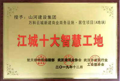 12月29日,2019年江城“雙十大”工地選樹活動頒獎典禮舉行。山河建設集團項目管理公司承建的萬科云城新建商業商務設施、居住項目(A地塊)榮獲“江城十大智慧工地”榮譽稱號。
